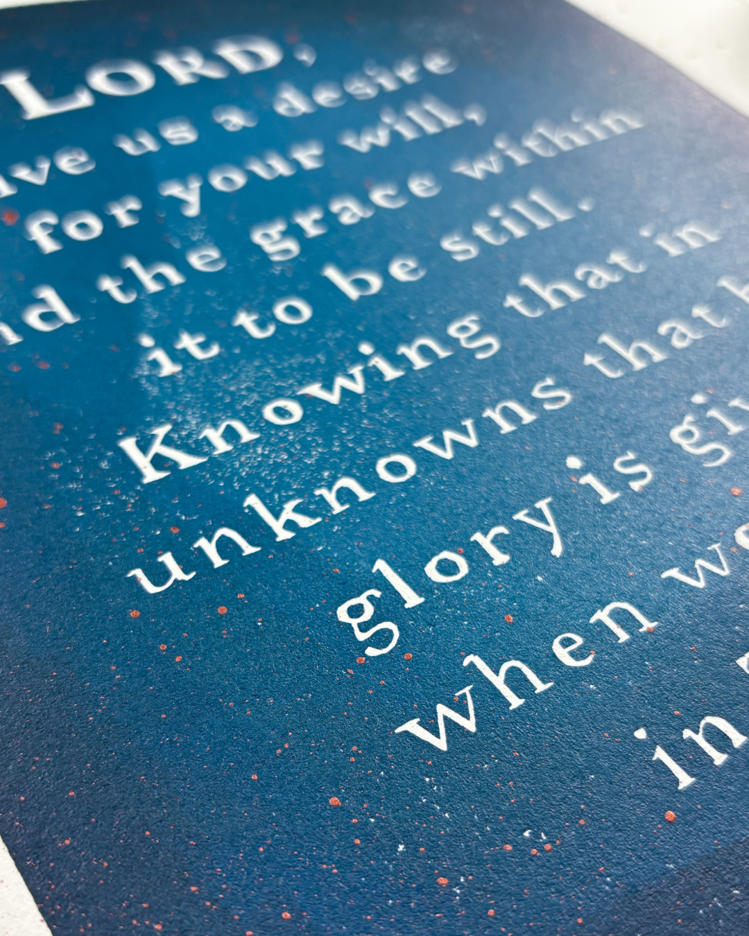 These handmade monoprints feature a heartfelt prayer written for my own family—a reminder to rest in God’s will and trust Him through life’s uncertainties. Just as I have prayed this prayer over my family for years, my hope is that this visual exhortation will be an encouragement to you and your family when unknowns surface.